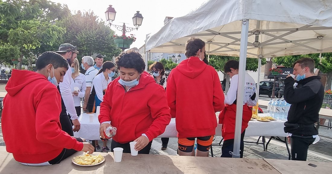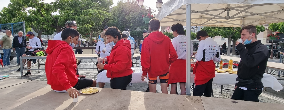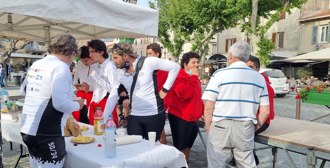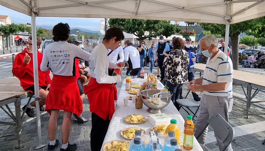 Ils sont arrivés ce samedi en fin d’après-midi à Saint-Florent sur la Place des Portes après quelques 108km dans les jambes ! Ils ont été accueillis par M. le Maire et les élus et ont pu se désaltérer avec un buffet offert par la municipalité.
