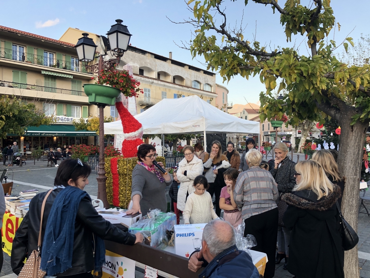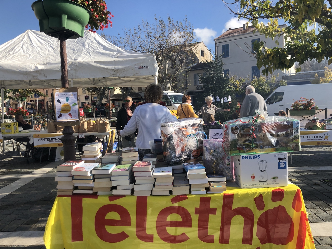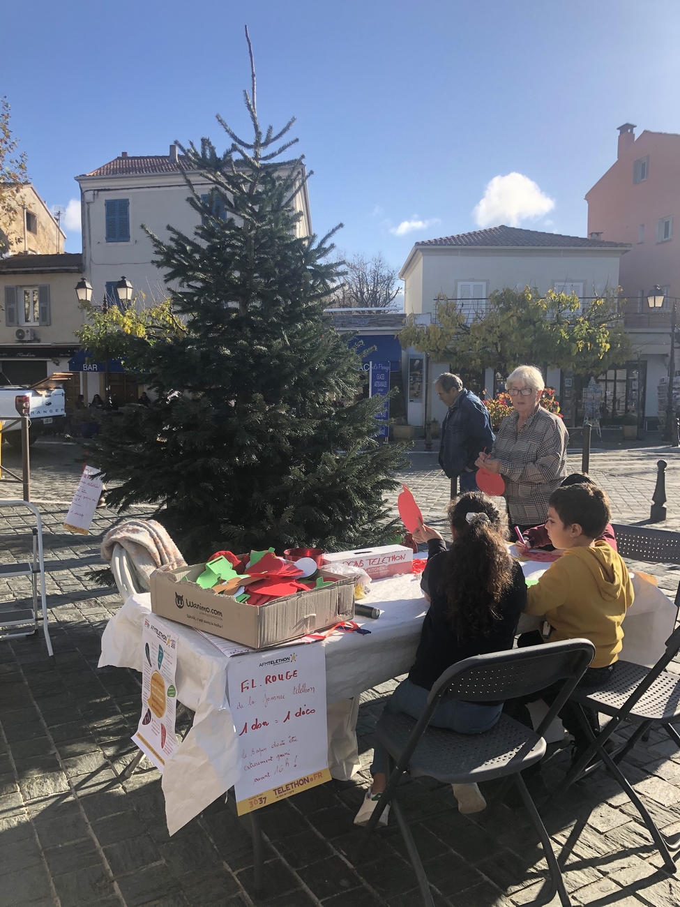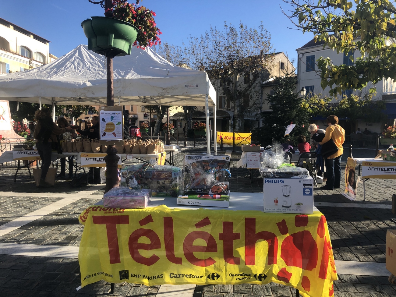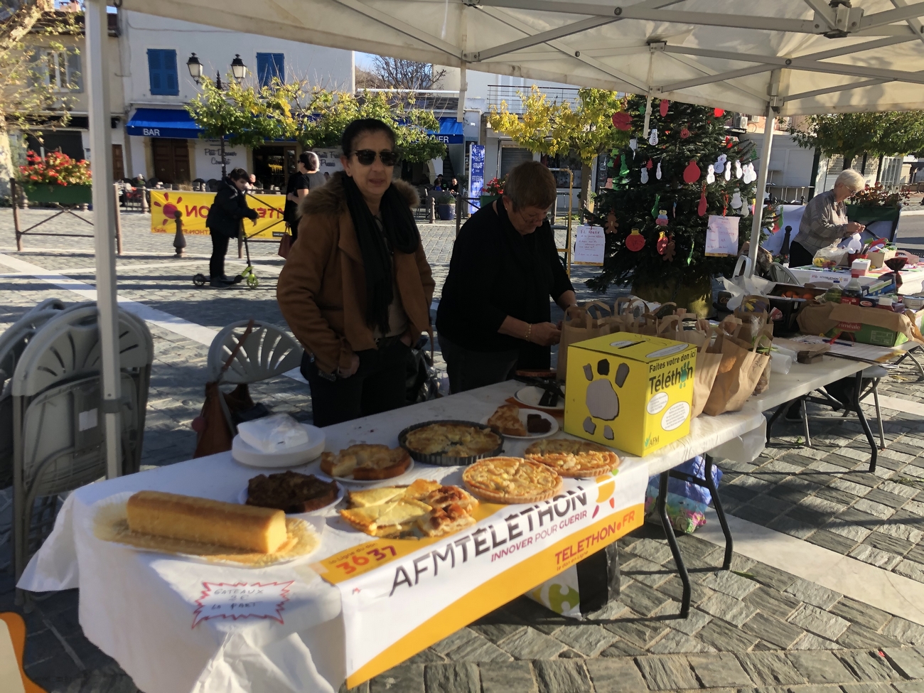 La journée de samedi s’est déroulée sous un grand soleil et les bénévoles du Téléthon et de l’association « Animations et culture » ont œuvré toute la journée pour vendre des clémentines et des gâteaux généreusement offerts.