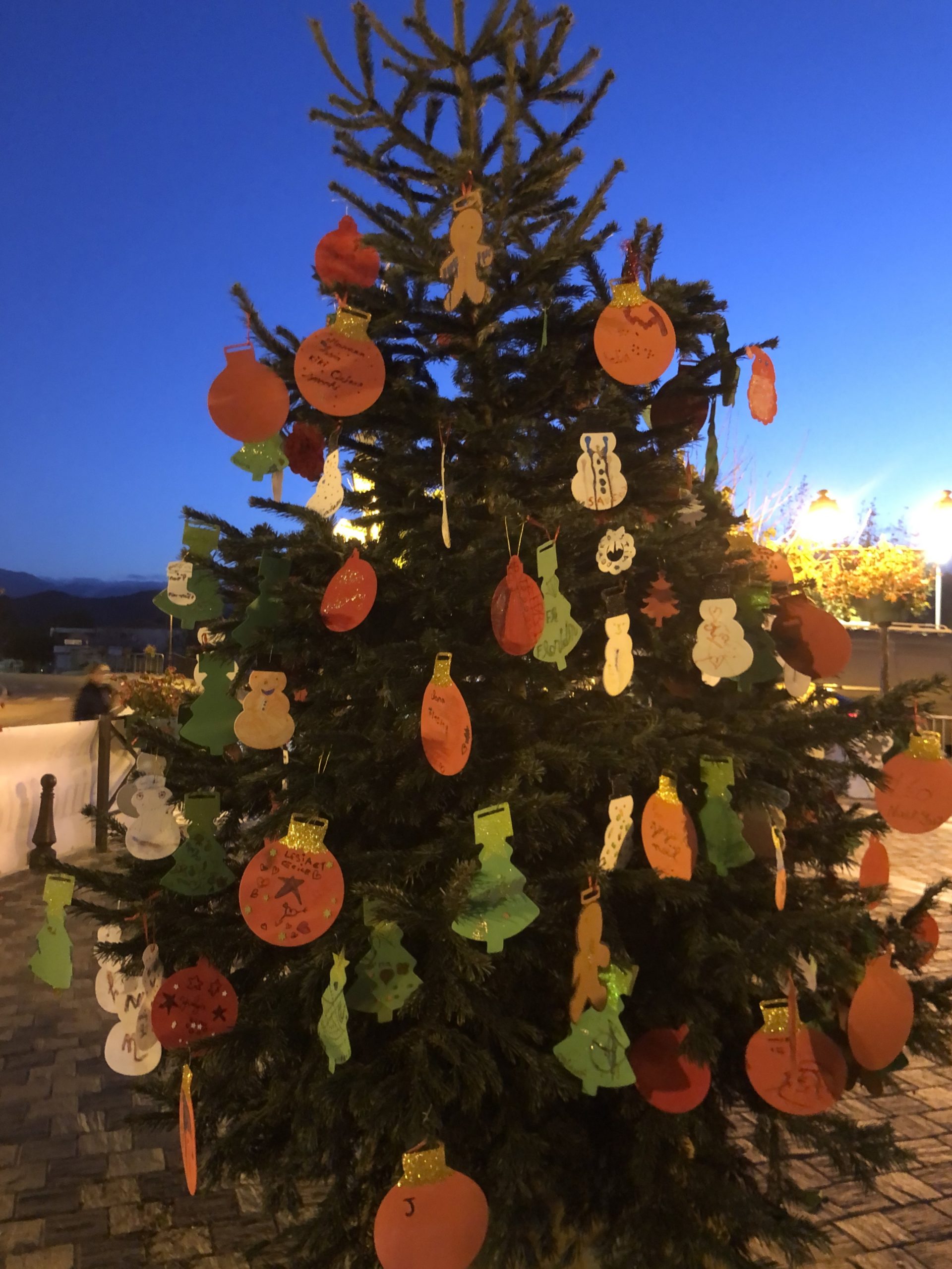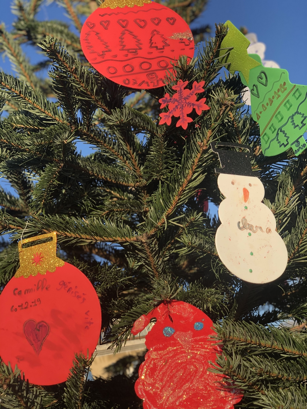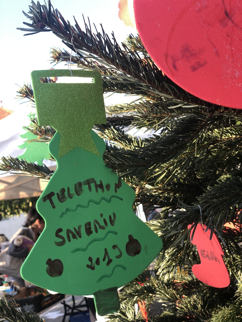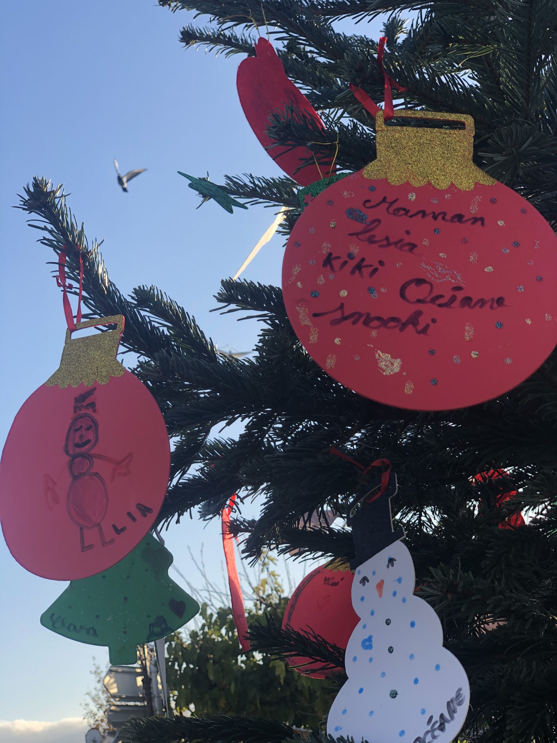 Le fil rouge de la journée : remplir le grand sapin de décoration de noël avec un mot ou un dessin pour les enfants malades, défi relevé haut la main grâce à la créativité des enfants et des plus grands !