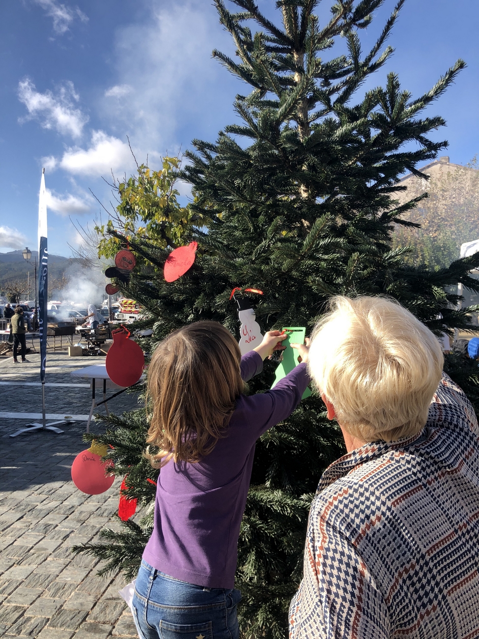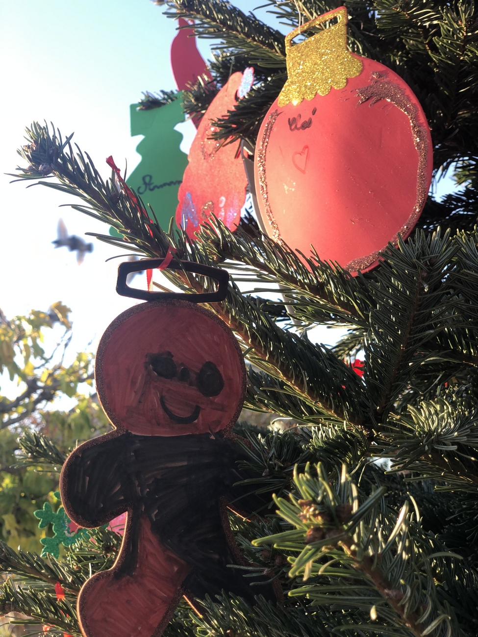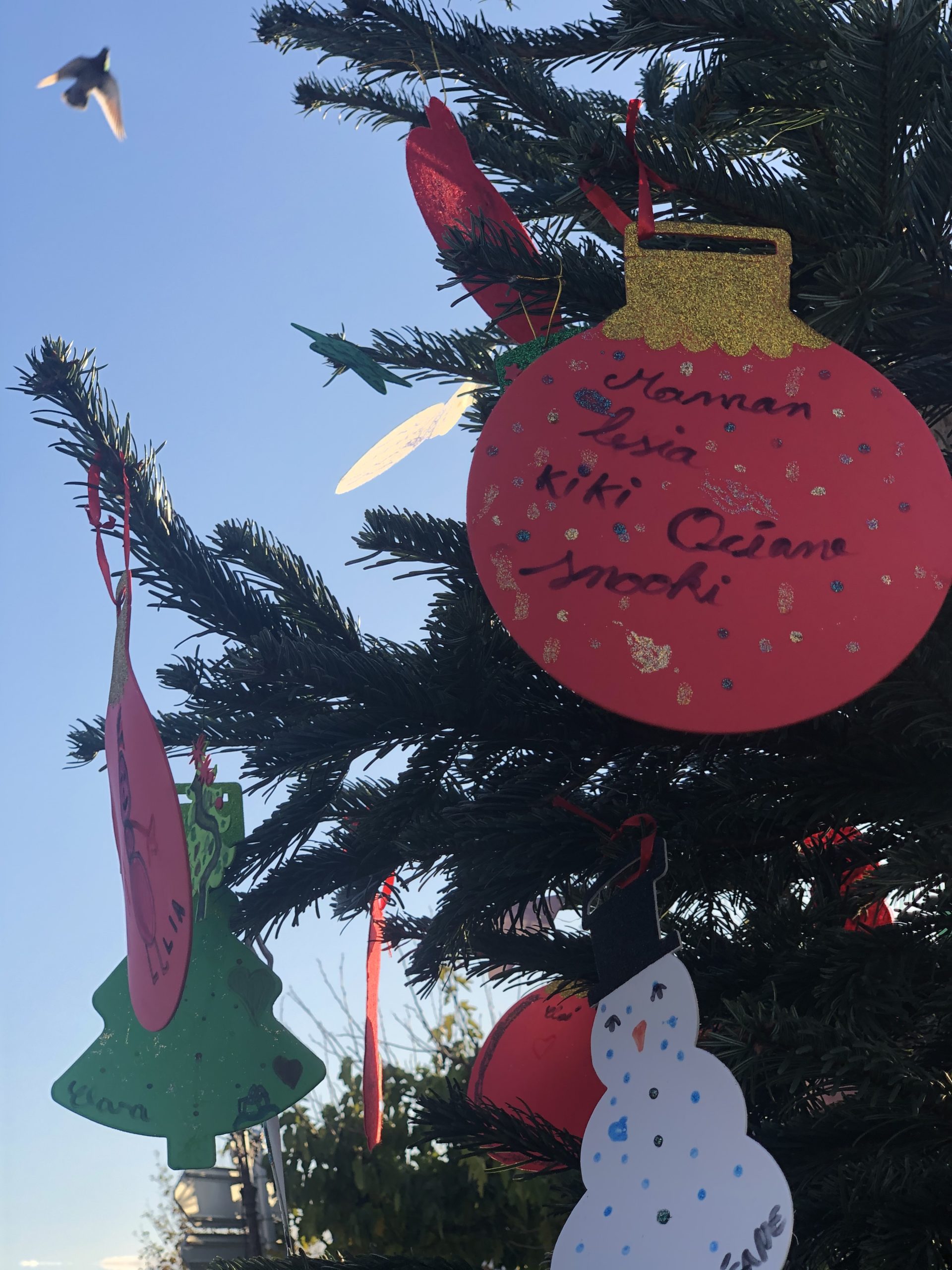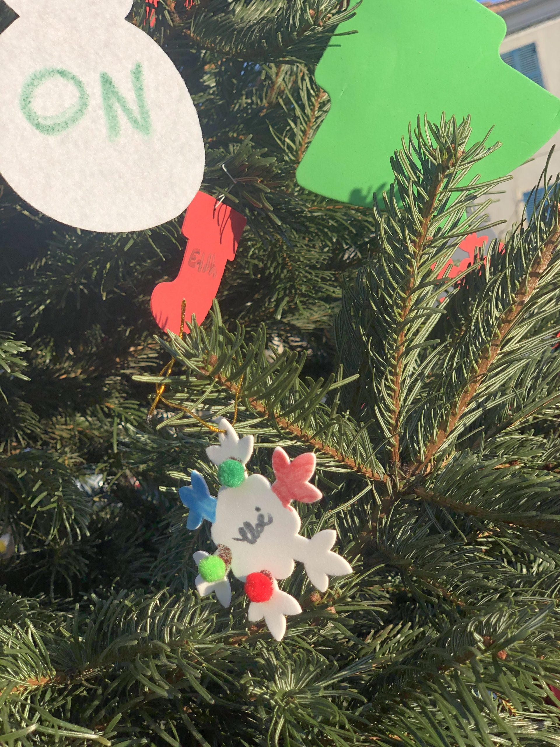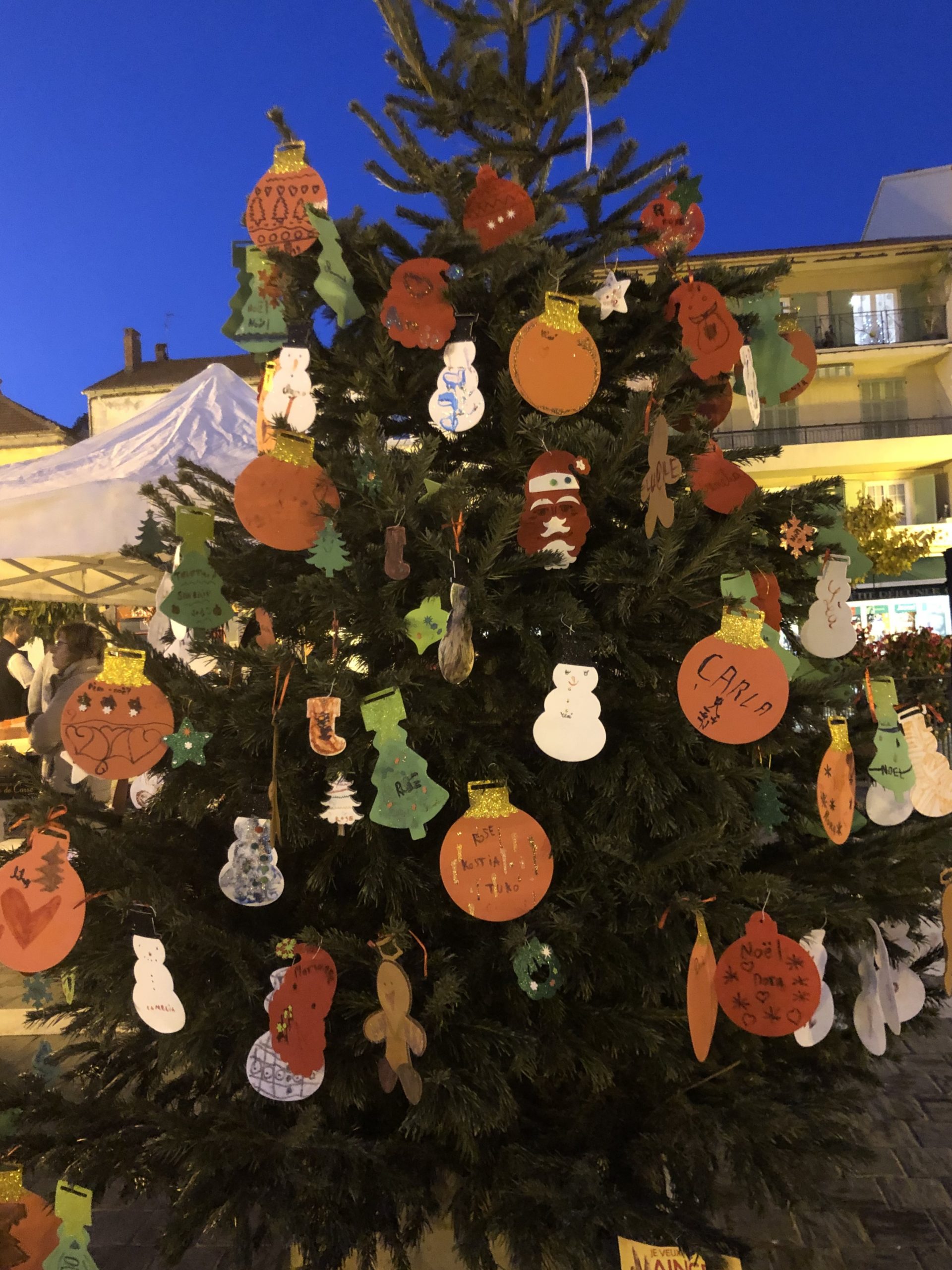 Le fil rouge de la journée : remplir le grand sapin de décoration de noël avec un mot ou un dessin pour les enfants malades, défi relevé haut la main grâce à la créativité des enfants et des plus grands !
