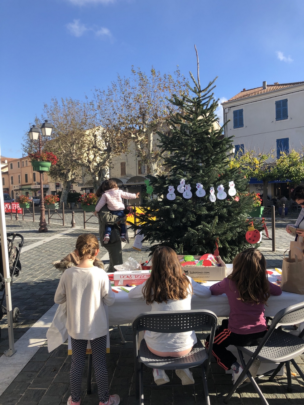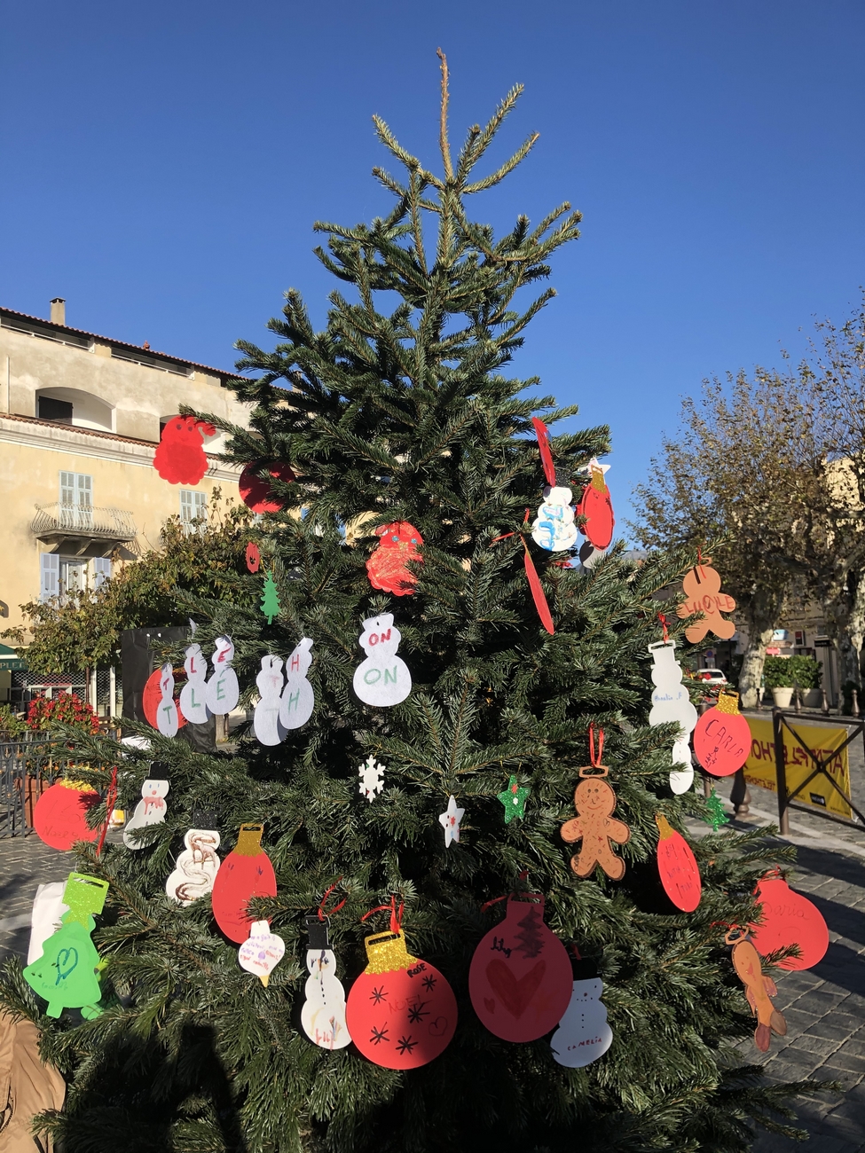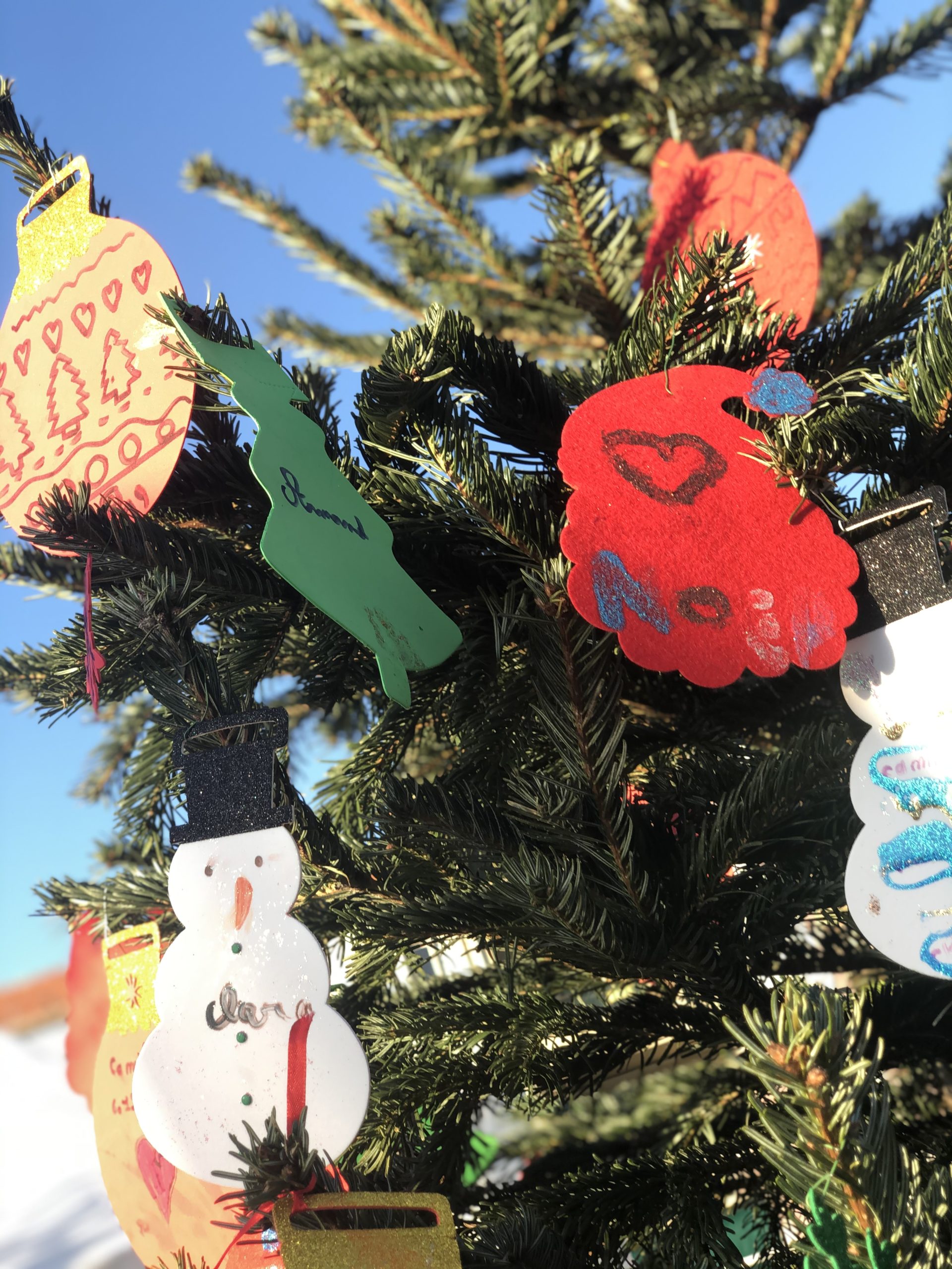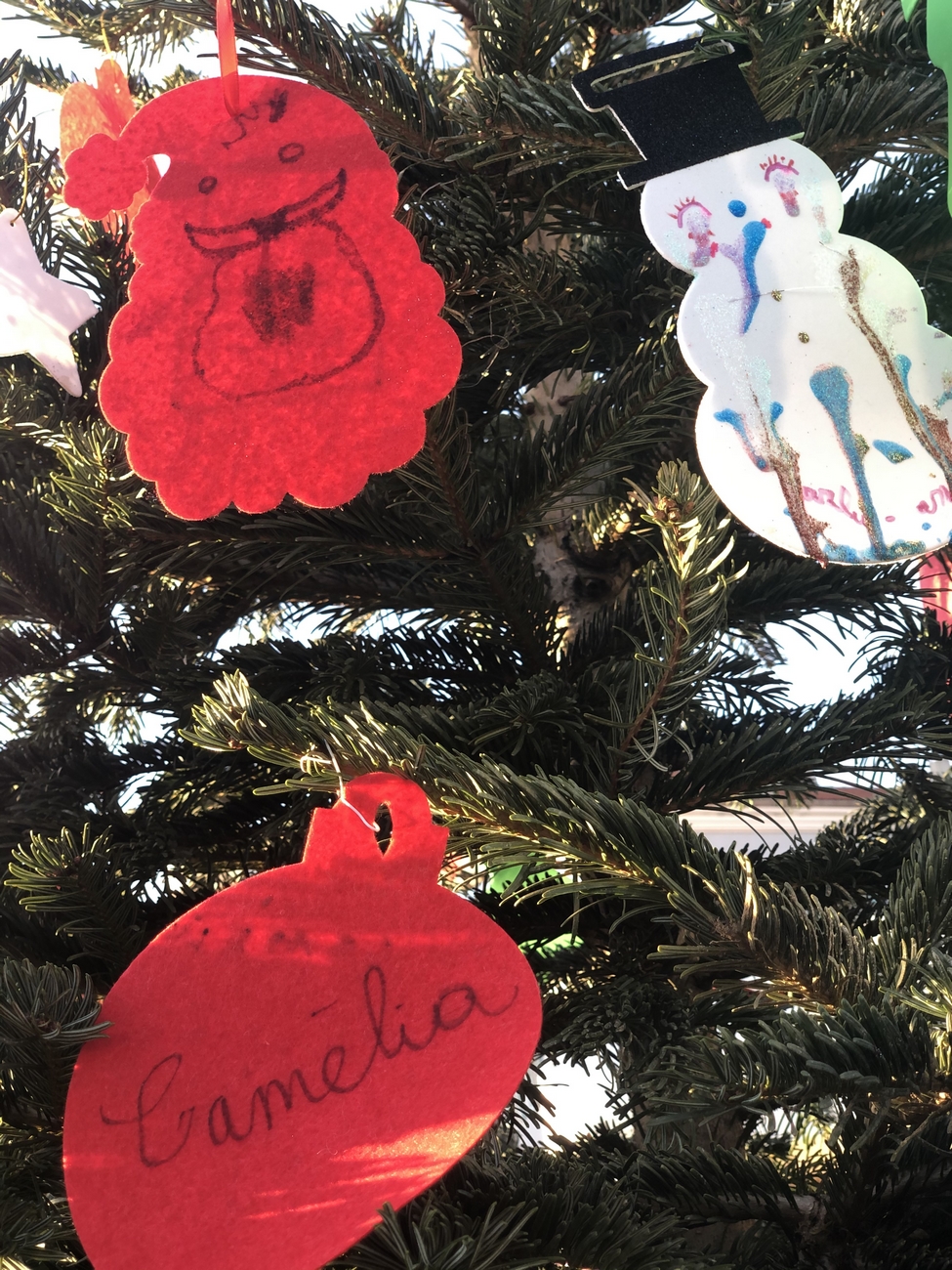 Le fil rouge de la journée : remplir le grand sapin de décoration de noël avec un mot ou un dessin pour les enfants malades, défi relevé haut la main grâce à la créativité des enfants et des plus grands !