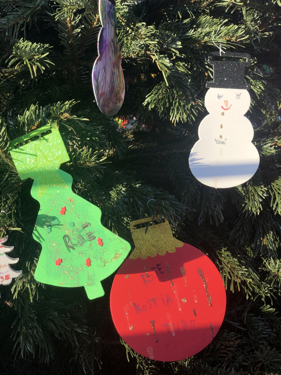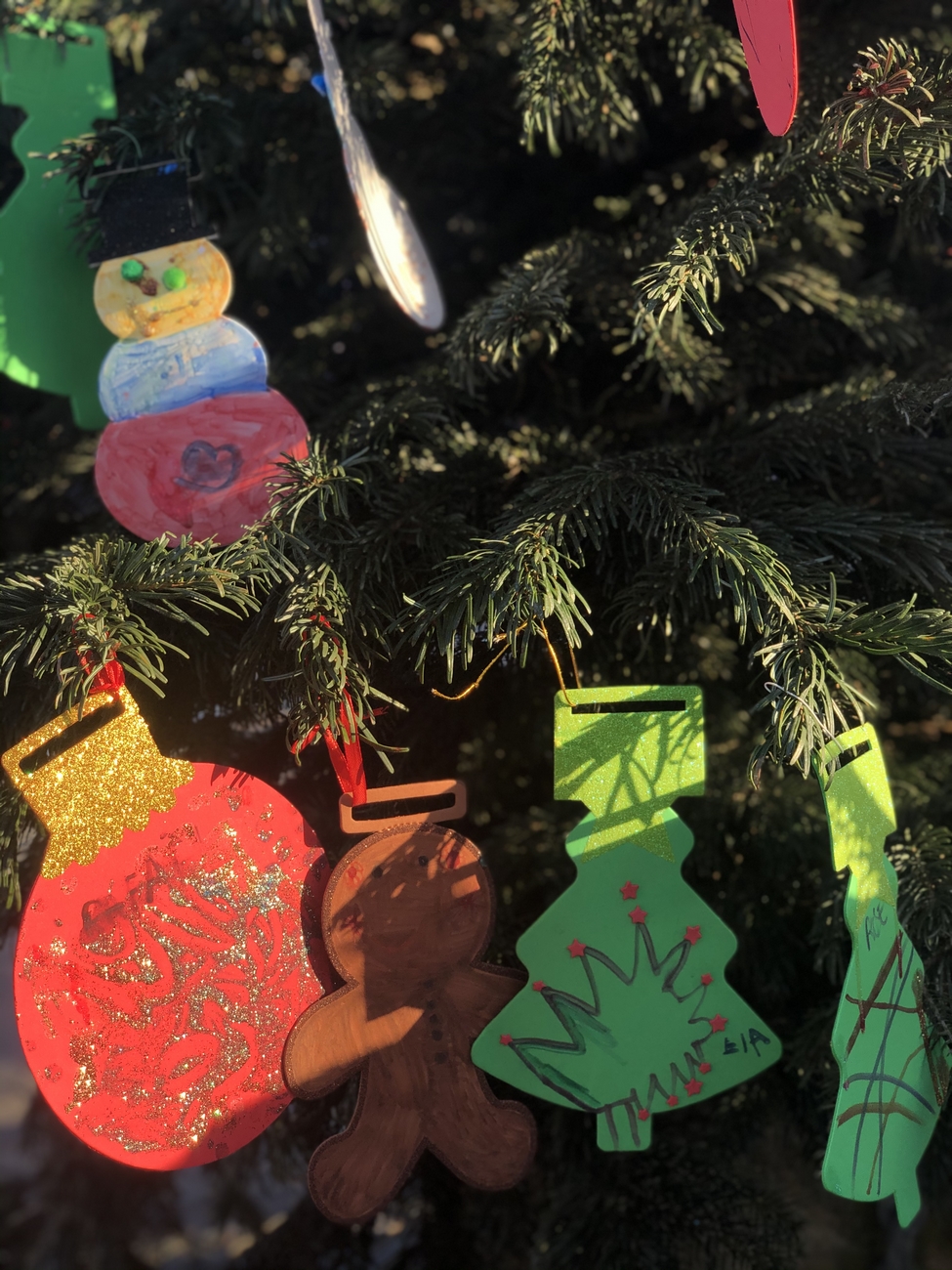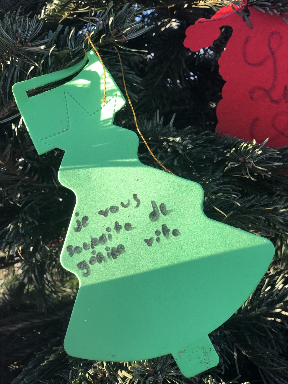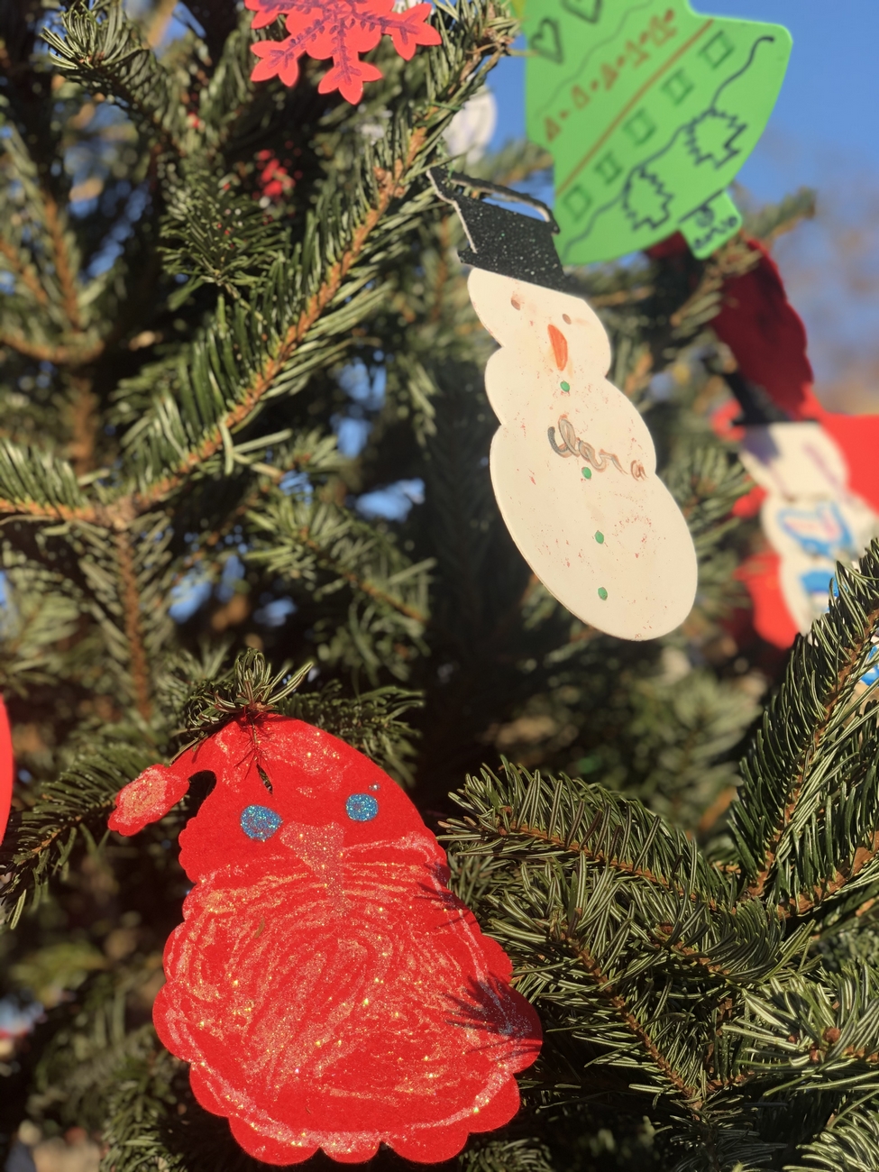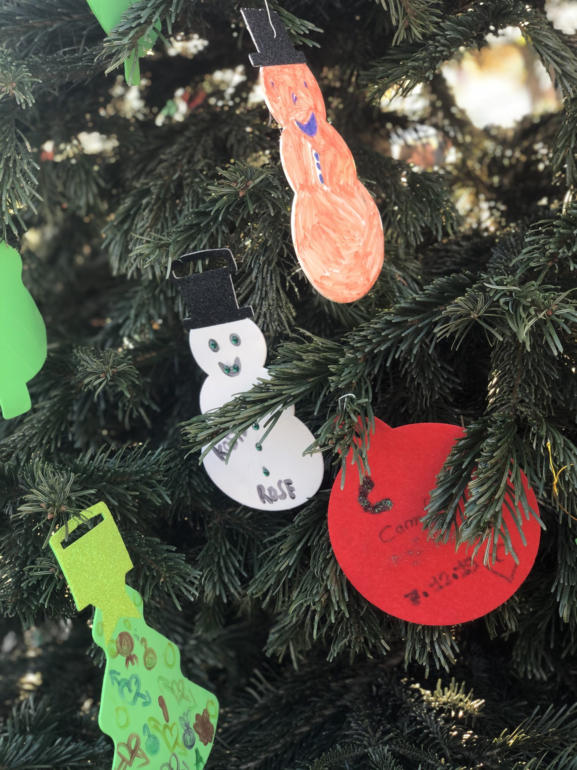 Le fil rouge de la journée : remplir le grand sapin de décoration de noël avec un mot ou un dessin pour les enfants malades, défi relevé haut la main grâce à la créativité des enfants et des plus grands !
