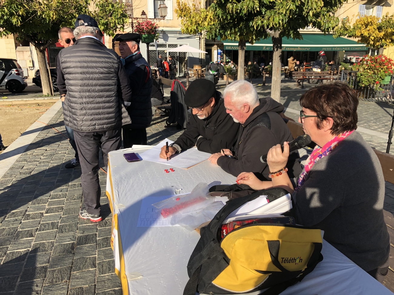 A midi, tout le monde s’est régalé avec les merguez, figatelli cuits au barbecue sur la place, accompagnés d’un verre de vin !