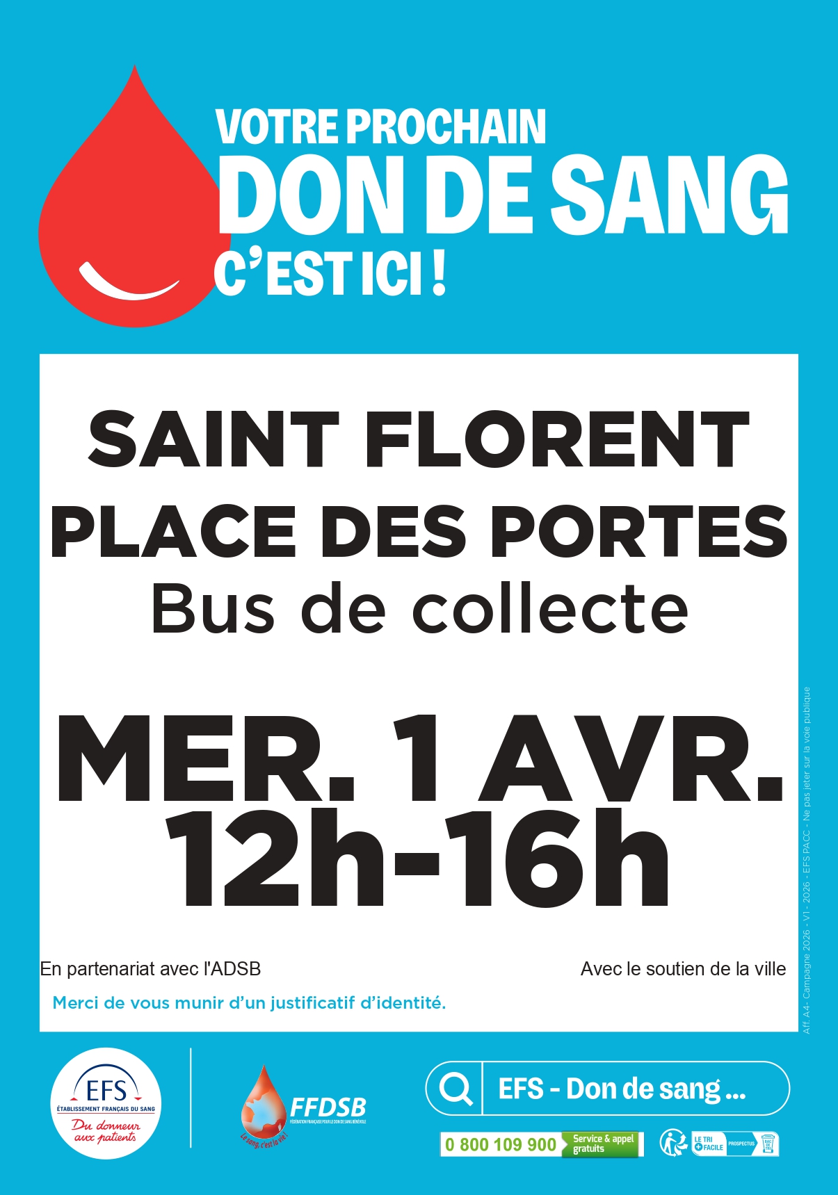 Don du sang – Mercredi 1er avril 2026 – Place des Portes