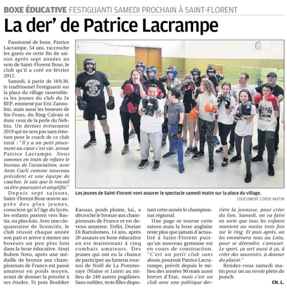 Ce sera le dernier pour l’entraineur du club de boxe de Saint-Florent, Patrice Lacrampe qui entraine les jeunes Saint-Florentins depuis 7 ans.