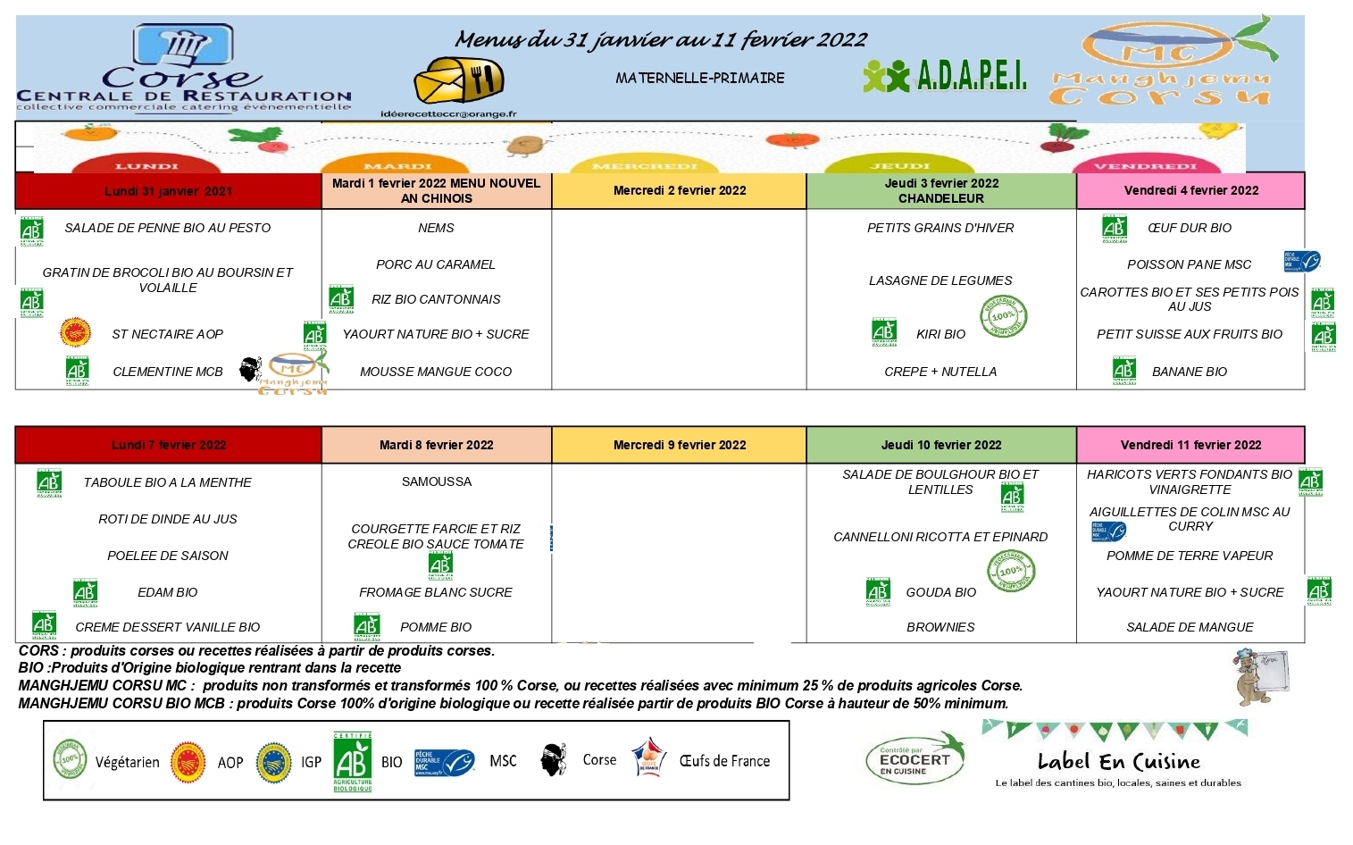 Retrouvez ici 👇👇 et sur la page de la cantine en cliquant ici, le menu de la cantine du lundi 31 janvier au vendredi 18 février 2022.