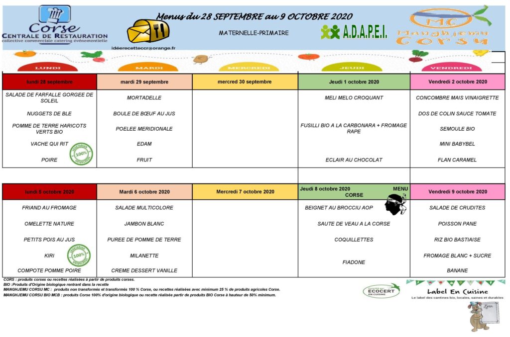 Retrouvez ici 👇👇 et sur la page de la cantine en cliquant ici, le menu de la cantine du 28 Septembre au 16 Octobre 2020.