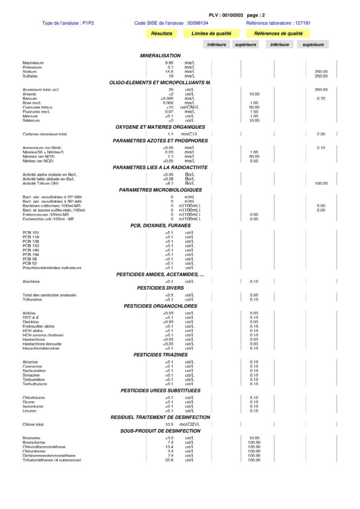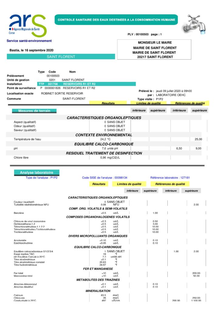 Retrouvez ci-dessous les résultats contrôle sanitaire des eaux destinées à la consommation humaine en date du 16 septembre 2020.