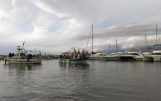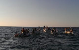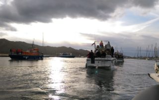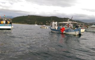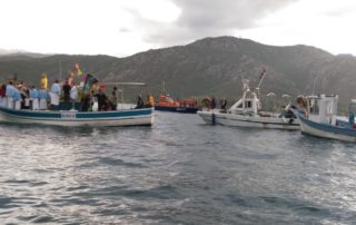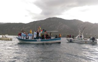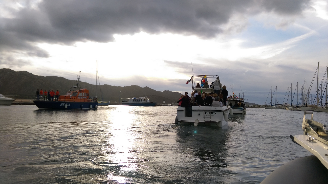 Tous les bateaux participants à la procession ont été invités à prendre un temps de prière en mémoire de tous ceux qui ont péri en mer et un bouquet de fleur a été jeté à la mer en leur mémoire.