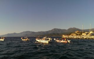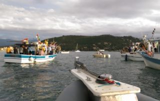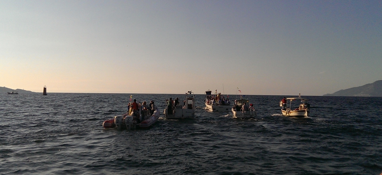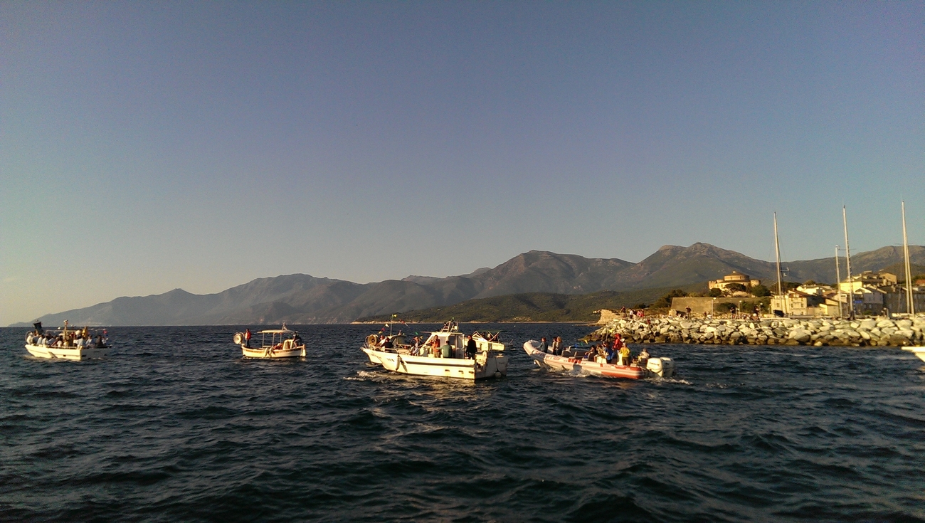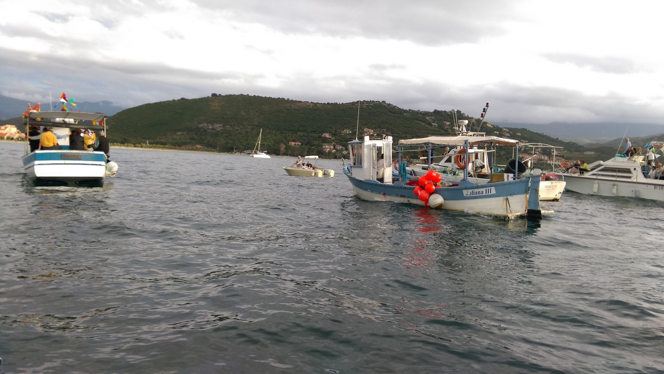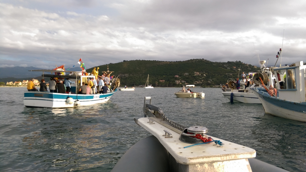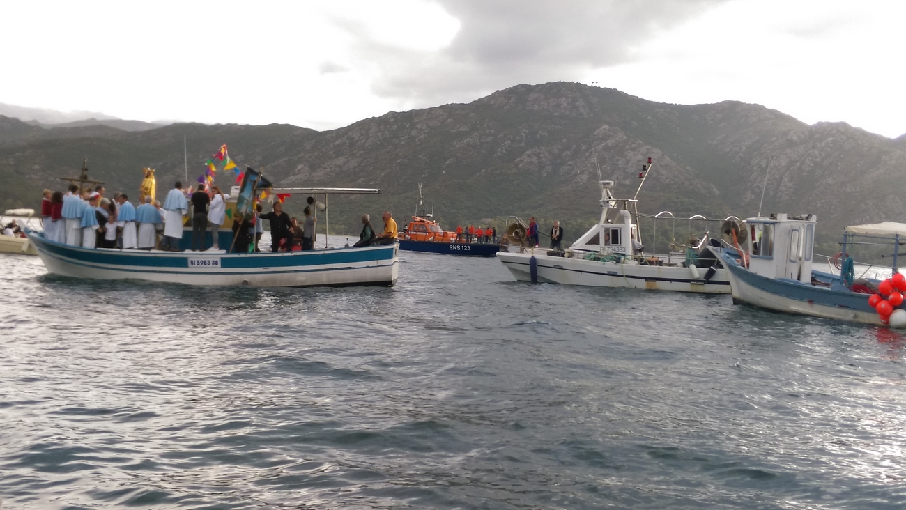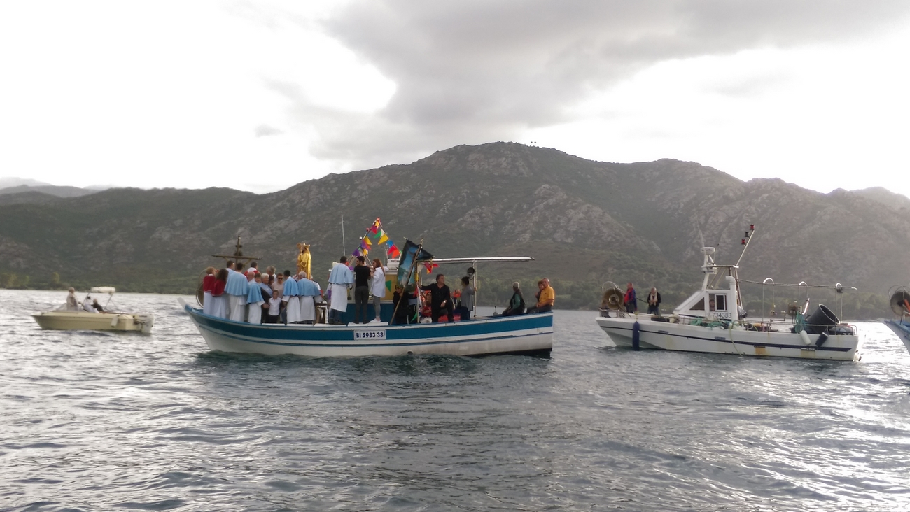 Saint Erasme restauré à la Feuille d’Or en 2015, a été emmené en procession en mer, accompagné des Confréries et des Saints Florentins, jusqu’au phare de Tignosu.